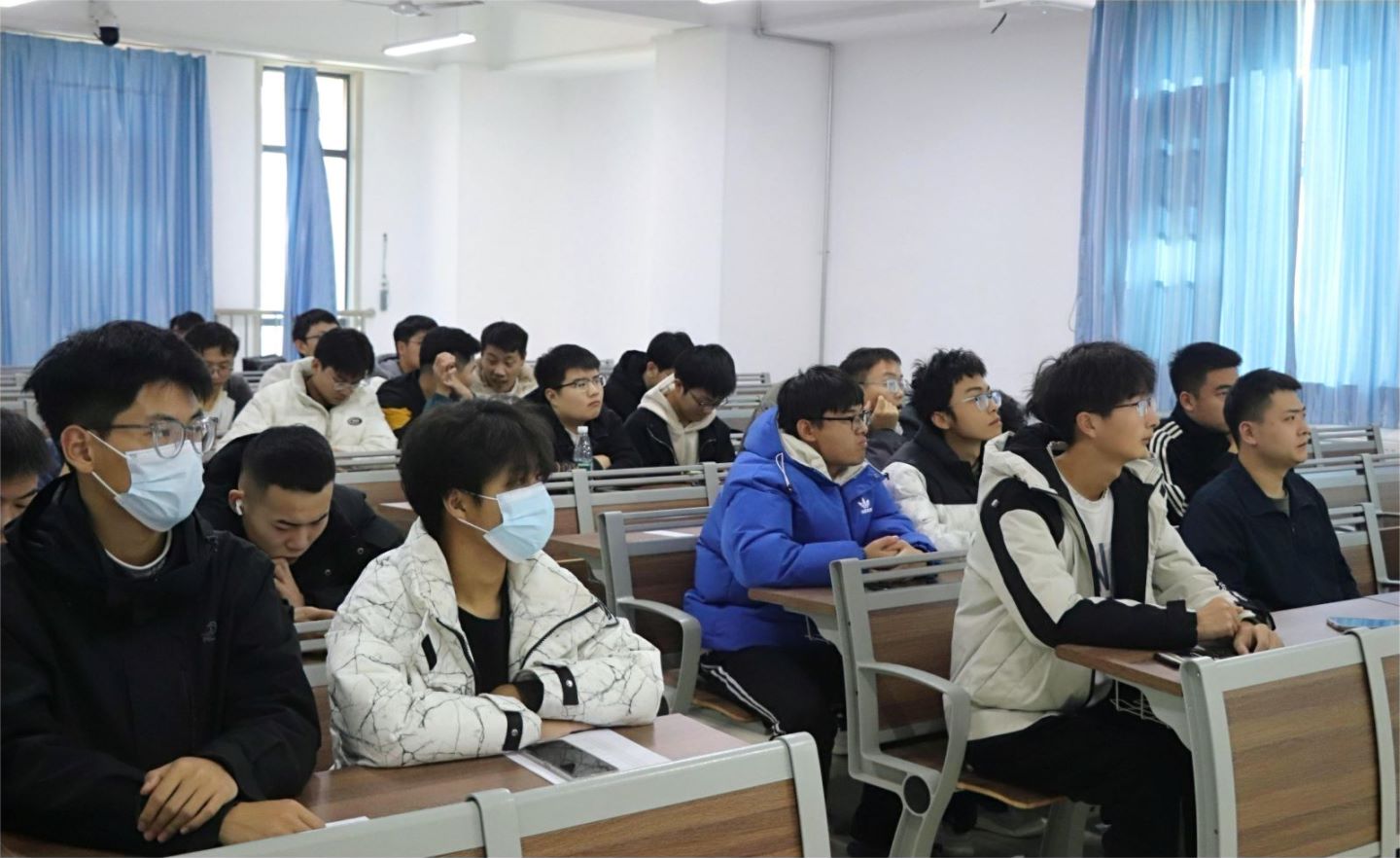 会上,两位优秀退役士兵代表结合自身经历,为同学们讲解了征兵入伍相关事项。首先,刘光勇介绍了大学生应征入伍的基本条件和具体流程,详细解读了军衔等级制度,并通过图片为大家分享真实的军旅生活。随后,焦志恒为同学们讲解了大学生应征入伍的相关政策,从保留学籍、学费补偿、助学金发放、退伍安置等方面着手,详细介绍了相关优惠政策,让同学们更深入地认识到国家对大学生参军入伍的支持。最后,同学们踊跃提问,退役士兵耐心解答,解除了同学们心中的疑惑,激发了同学们参军的热情。