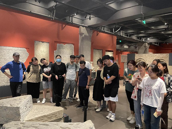 首先去往的是淮海战役纪念馆,同学们参观了淮海战役的指挥部模型,观摩了当时指挥部内部的布局和工作场景,整个模型的细致程度让同学们仿佛身临其境,深刻感受到了淮海战役的惊心动魄和浩大场面,也体会到了战争给人们带来的巨大痛苦和损失。紧接着同学们去往了徐州市博物馆,在讲解员的带领下同学们参观了“古彭千秋、大汉气象、天工汉玉、汉家烟火、俑秀凝华、金戈铁马”六个展厅,感悟两汉历史文化,并为汉文化深深折服。最后到达徐州汉画像石博物馆,进入馆内,琳琅满目的汉画像石映入眼帘,同学们为精巧绝伦的汉画像石所惊叹,在讲解员的带领下观赏了牛耕图、纺织图、九仕图、迎宾图、百戏图及八米长卷押囚图,欣赏着一块块精品的画像石,聆听着讲解员的认真翔实讲解,同学们系统地了解了汉代工匠的神秘与伟大,体会了汉文化的独特魅力。