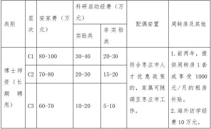 全职引进人才实行年薪制,学校在聘期内提供安家补助、团队建设经费、周转房等优惠政策,具体标准“一人一议”、“一事一策”。参考标准详见下表: