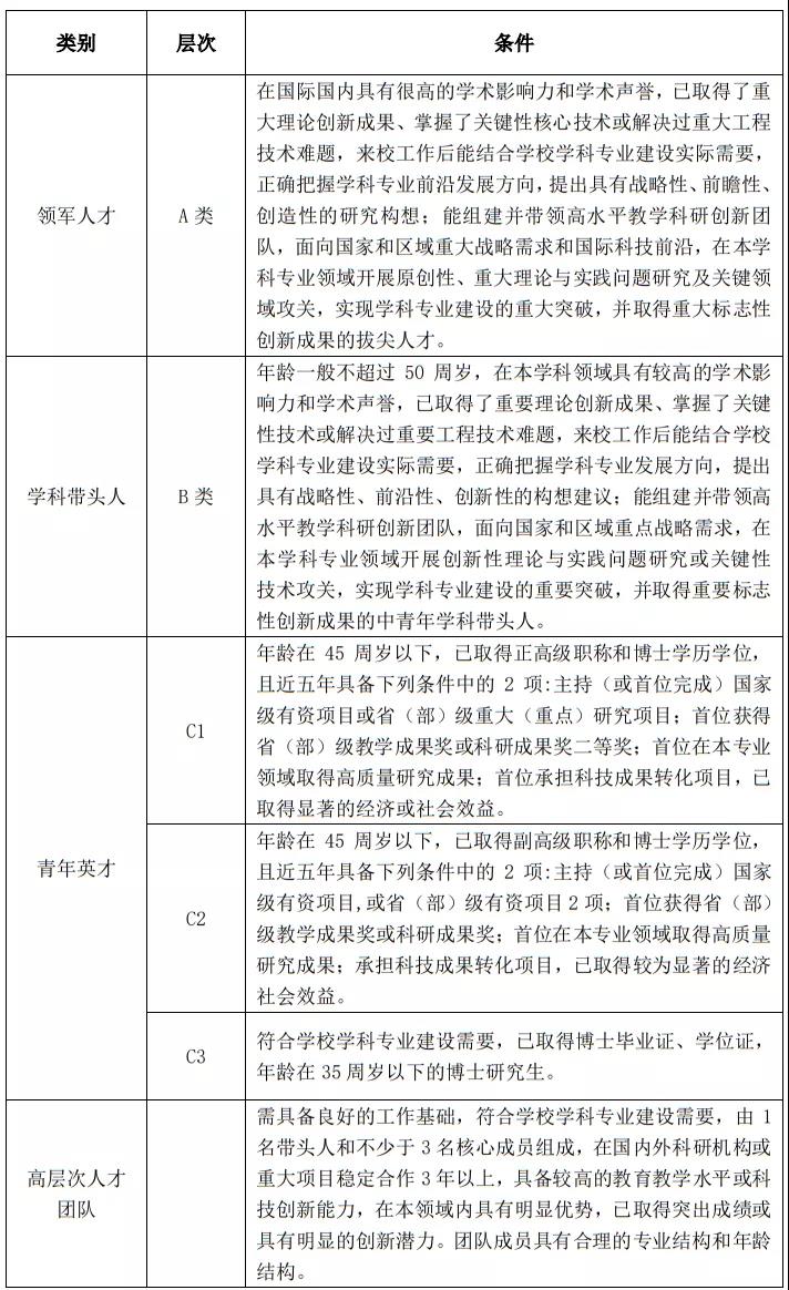 “领军人才”和“学科带头人”可采取全职引进或柔性方式引进。
