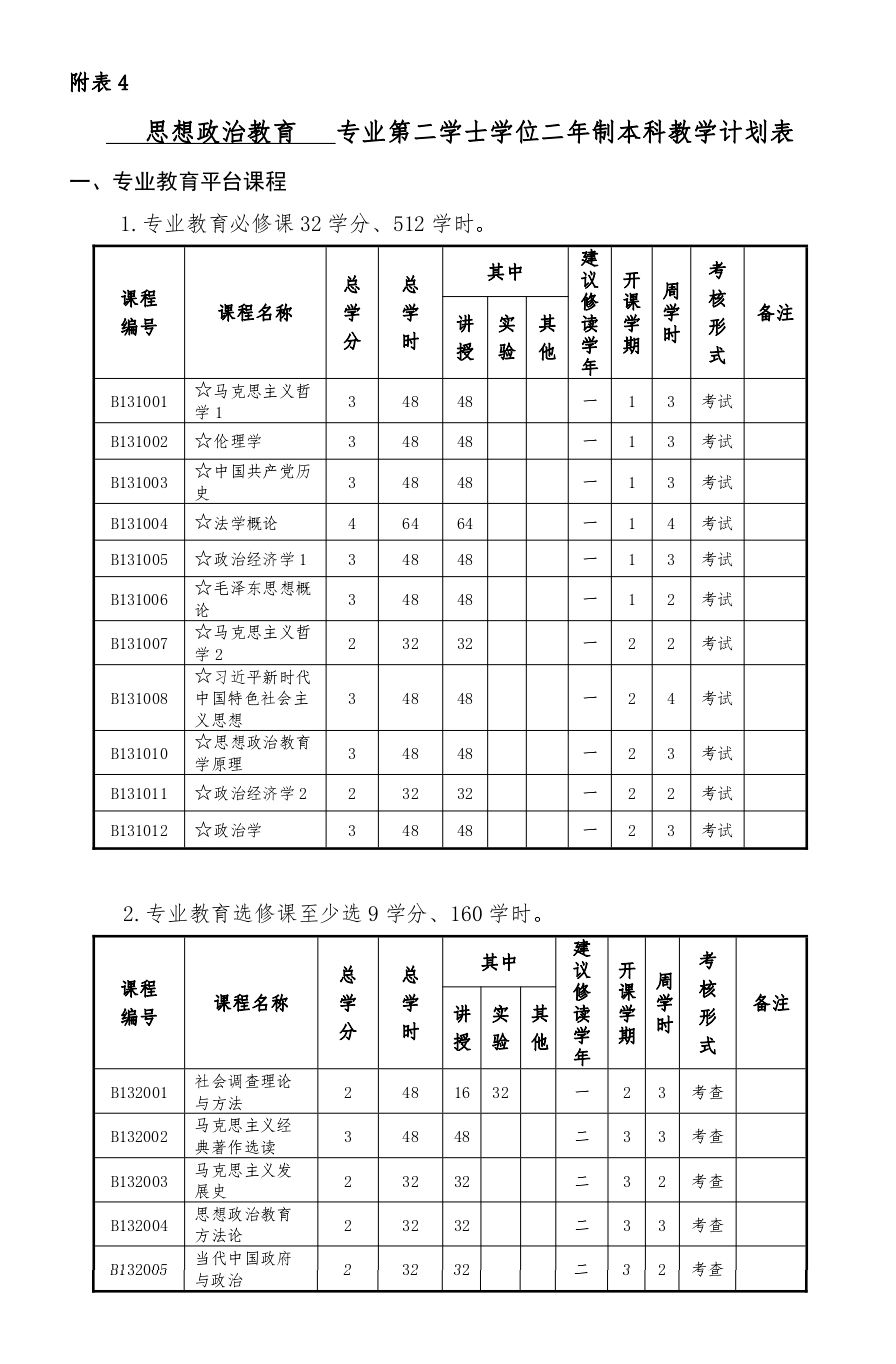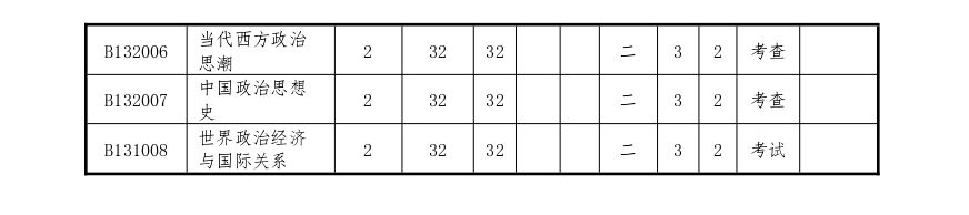 中学政治课教学论、毕业设计、社会调查理论与方法、毕业设计、教师技能训练。