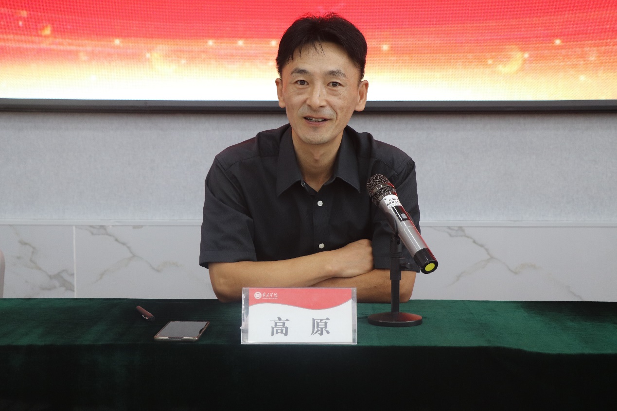 党总支书记高原介绍了枣庄市的基本情况和风土人情,并向2023级新同学提出了殷切期望,希望他们:一要锤炼品德,自觉用中华优秀传统文化培根铸魂、启智润心;二要做好学业规划,转变学习方式,充分利用好各类平台,打好专业基础,提高综合素养;三要严格自律,牢固树立规矩、纪律意识,加强学习并严格遵守校规校纪,使文明守纪成为自觉行为;四要守牢安全底线,增强防范意识,在学习生活中自觉筑牢安全防线;五要时刻保持清醒头脑,坚定维护意识形态安全,树立正确的价值观、利益观,坚定不移跟党走。
