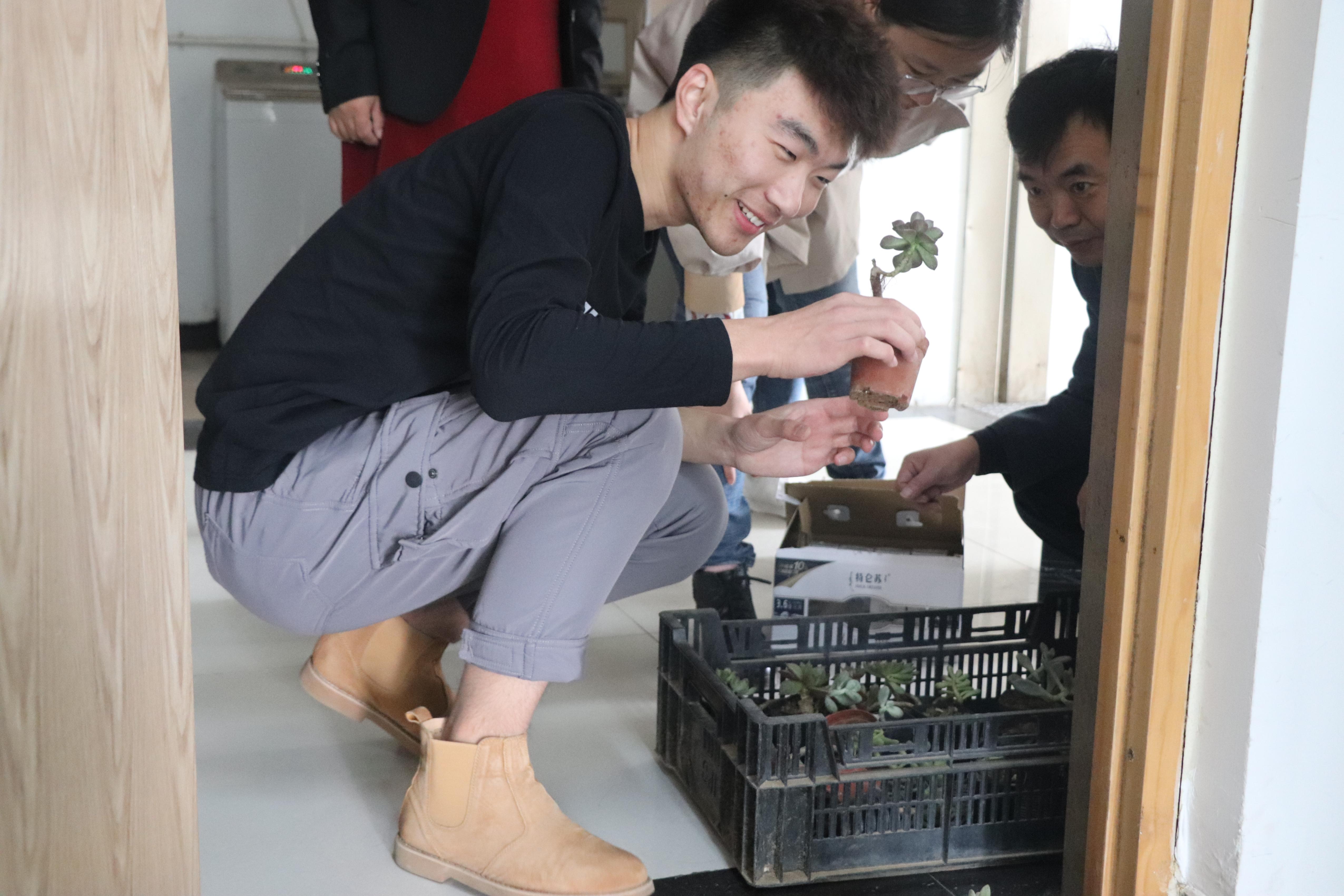 党总支书记蔡永清、副院长隋保禄及朱法武等党员老师来到学生宿舍,询问同学们选择方向、备考进度、睡眠质量等情况,了解日常学习生活问题和面临的实际困难,耐心细致地予以指导,勉励他们做好学习计划,持之以恒,坚定信心,合理安排生活起居,提高安全意识。看到同学们干净整洁的宿舍环境,老师们非常高兴,勉励大家继续保持整洁的环境,营造心情舒畅、温暖和谐的氛围,勇敢应对考研挑战。看到同学们兴高采烈地挑选心仪的多肉植物,老师们也开心不已。