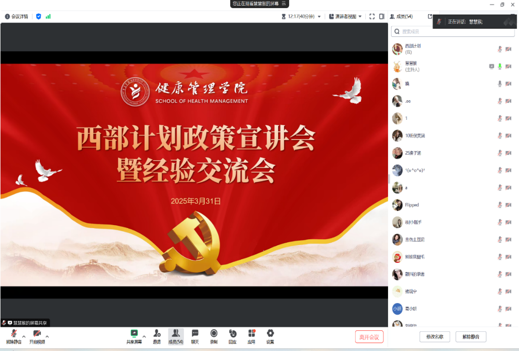 会议伊始,主持人从招录政策、岗位分布和保障机制三个维度对西部计划进行了系统解读,特别就服务期满政策、定向招录政策、职业能力培养等学生关切做了重点说明。