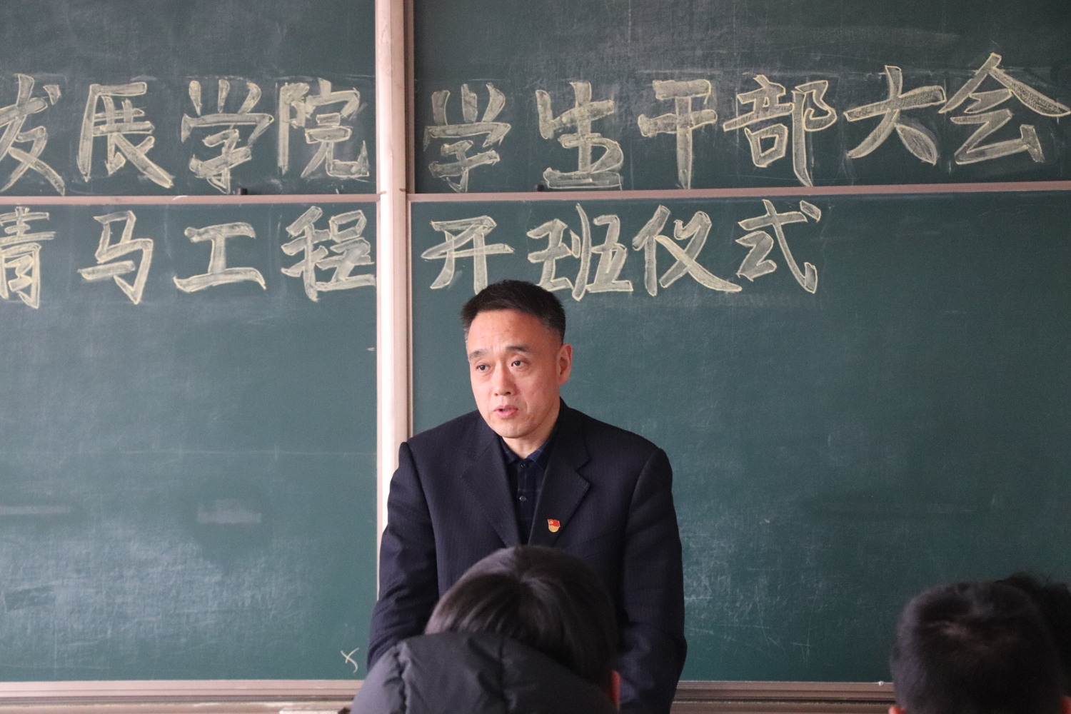 3月8日下午,我院“青马工程”培训班开班仪式暨学生干部大会在综合楼1414室举行。院党总支书记蔡永清、副书记王大鹏出席并讲话。团总支书记、辅导员、主要学生干部参加了会议。