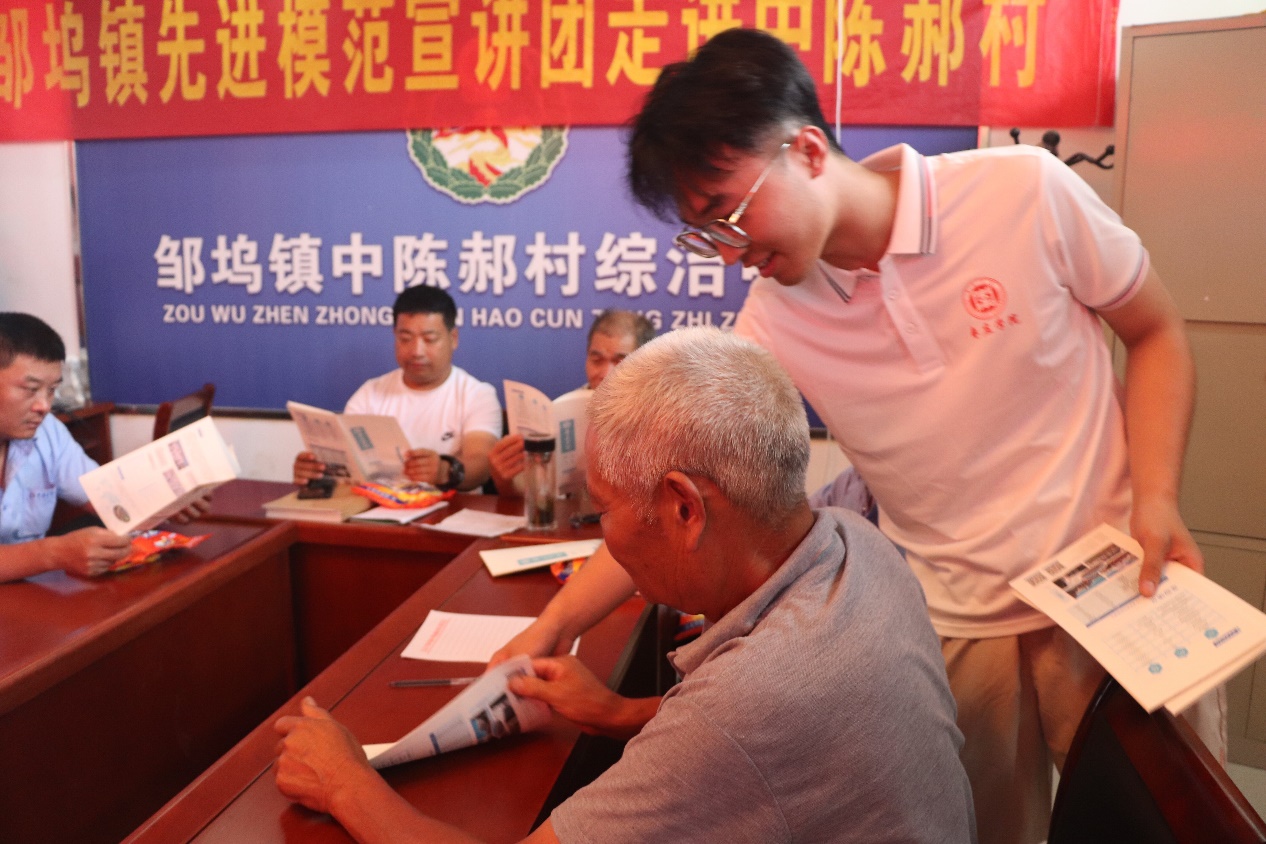 为深入学习宣传习近平新时代中国特色社会主义思想,贯彻落实习近平总书记关于青年工作的重要指示精神,7月6日,我院组建“政”青春“志”前行志愿服务队赴枣庄市薛城区邹坞镇中陈郝村,开展暑期“三下乡”社会实践活动。