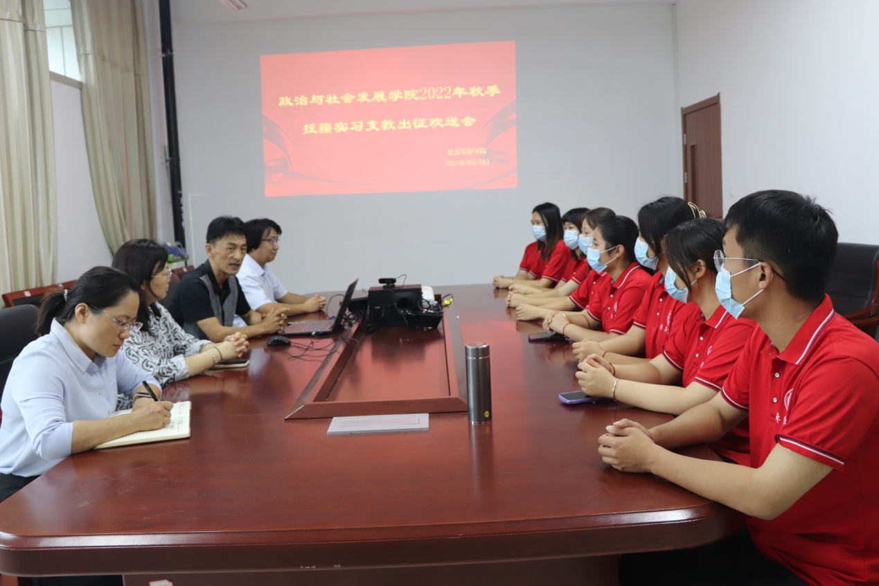 9月20日,我院在豁然楼A201召开2022年秋季援疆实习支教学生欢送会,学院党政领导、教师代表和全体援疆支教同学参加,会议由副院长董嫱嫱主持。