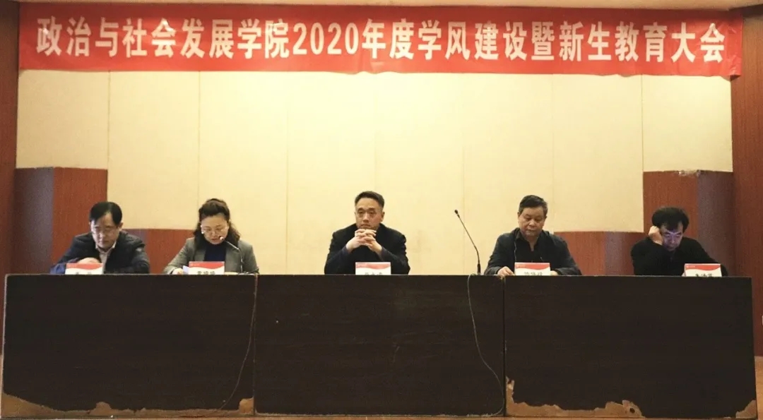 11月11日下午,我院2020年度学风建设暨新生入学教育大会在音乐楼报告厅隆重召开。党总支书记蔡永清、副院长隋保禄、董嫱嫱出席大会;历史专业负责人、教研室主任朱法武,行政管理专业负责人、教研室主任李亮在主席台就坐;院办主任谢金萍,团总支书记孙洪扬以及辅导员、班主任参加会议。会议由董嫱嫱主持。