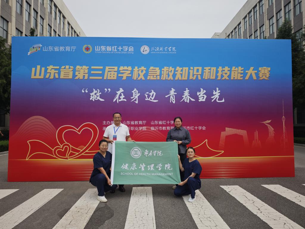 本次大赛由山东省教育厅与山东省红十字会联合主办,以“救在身边,青春当先”为主题,设置理论考核及多项实操环节,涵盖成人单人心肺复苏(CPR+AED)、成人呼吸道异物梗阻处理、前臂骨折无夹板固定、头部外伤出血现场急救等内容,全面检验选手的理论素养与实践能力,旨在通过竞赛激发师生学习急救知识的热情,提升校园应急救护能力,筑牢校园安全防线。