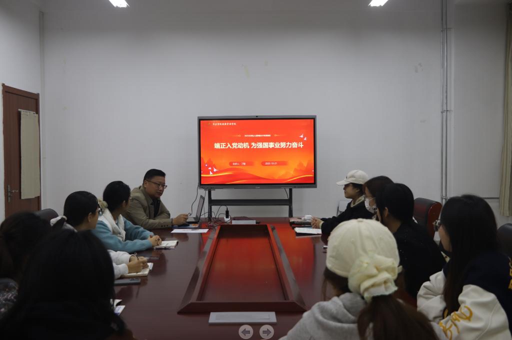 为帮助入党积极分子端正入党动机,明确入党目的,10月21日,院党委书记丁聪在豁然楼A201为全院入党积极分子讲授专题党课。本次培训以《端正入党动机》为主题。
