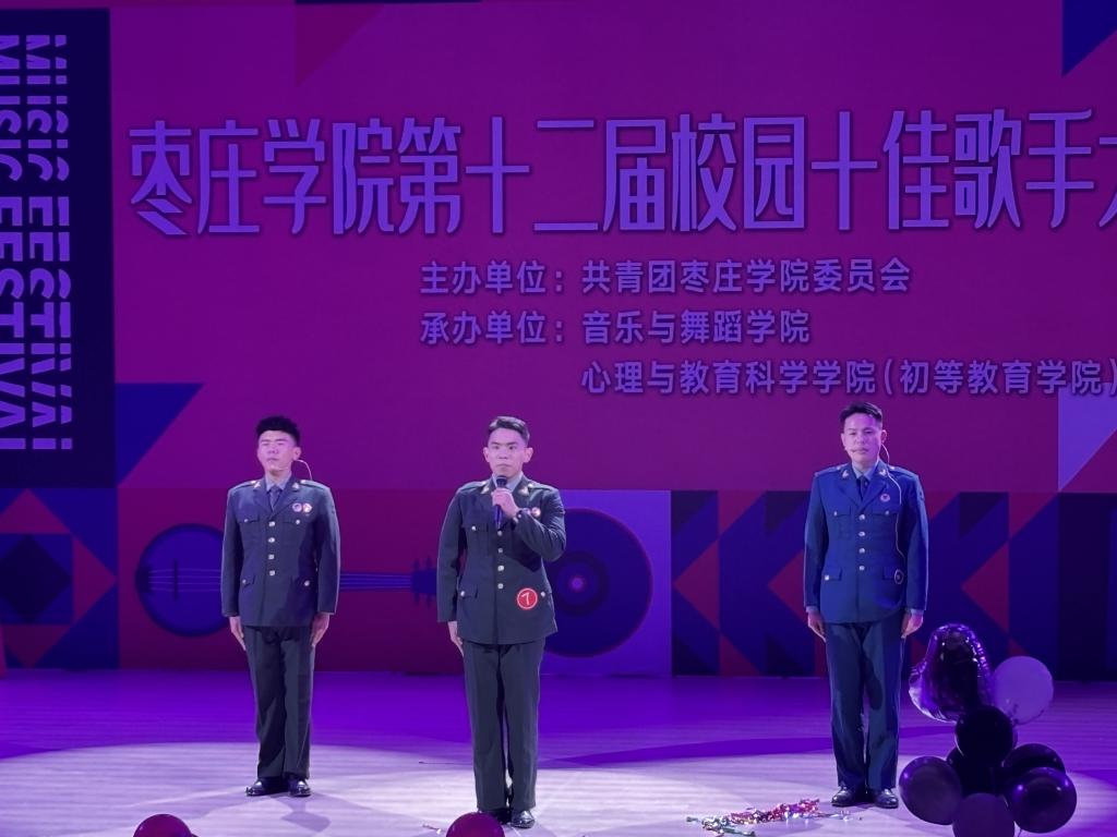 决赛现场,我院参赛选手以军装造型亮相,共同演绎歌曲《当那一天来临》。主唱李承可歌声铿锵有力,将军人的豪迈气质与责任担当融入演唱,气息稳定且情感饱满,精准传递出歌曲的使命与热血;助唱张甲鑫、姚治国的和声清亮舒展,与主唱音色形成层次互补,为表演增添了情感张力。三人军姿挺拔,军装的庄重与歌曲的激昂相得益彰,表演极具感染力。评委从演唱技巧、仪表仪态、综合素质等维度综合评定,最终我院学子李承可荣获“校园十佳歌手提名奖”。三位同学的默契配合与精彩表现,为太阳成集团tyc33455ccww在本次赛事中留下了深刻印记。