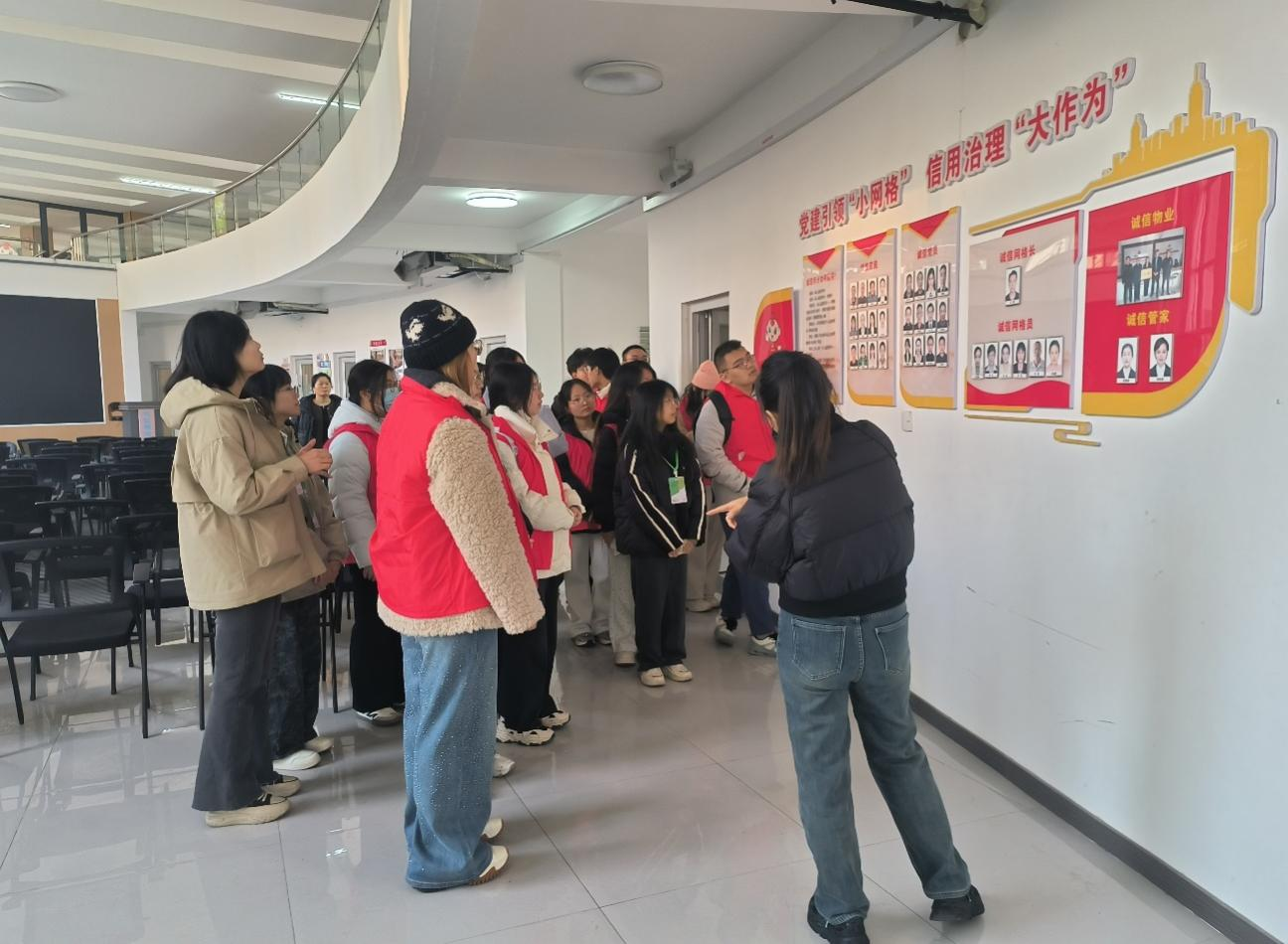 活动伊始,工作人员详细介绍了社区在党建引领下开展的各项民生服务与治理创新举措,学生们系统参观了四季菁华社区的公共空间、服务设施与管理区域。通过实地走访党群服务中心、文化活动站、社区卫生服务站等场所,同学们深入了解了社区的组织架构、服务职能与日常运行机制。随后,同学们分组深入各居民楼栋,开展以“清楼道、除隐患、保平安”为重点的集中整治行动,排查楼道内安全隐患、清理墙面非法小广告、向居民宣传安全常识等,将理论学习转化为维护社区安全整洁的实际行动。同学们纷纷表示,这次经历加深了他们对社区健康促进与环境治理的理解,更在服务中体会到基层工作的价值与挑战。