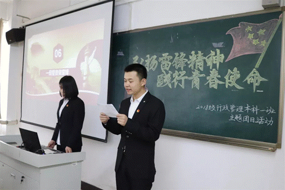 3月20日下午,我院行政管理专业本科一班团支部在综合楼1405室开展了“弘扬雷锋精神,践行青春使命”主题团课。团省委副书记刘少华一行在校长李东、党委副书记曾宪明的陪同下观摩了主题团日活动。