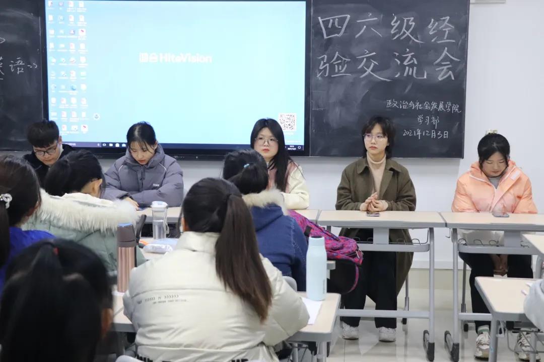本次经验交流会首先由高年级学生为即将参加四六级考试的低年级学生指明了备考的冲刺方向和复习方法,以供其借鉴和学习。随后,同学们积极向师哥师姐提出有关四六级考试的相关问题,师哥师姐耐心解答并传授备考经验。最后,师哥师姐鼓励同学们要珍惜大学时光,不忘初心,自信迎接挑战,争取考出理想成绩。