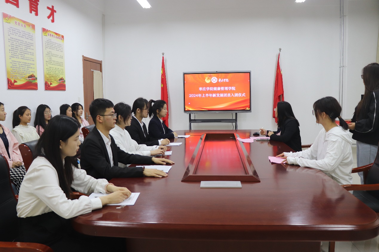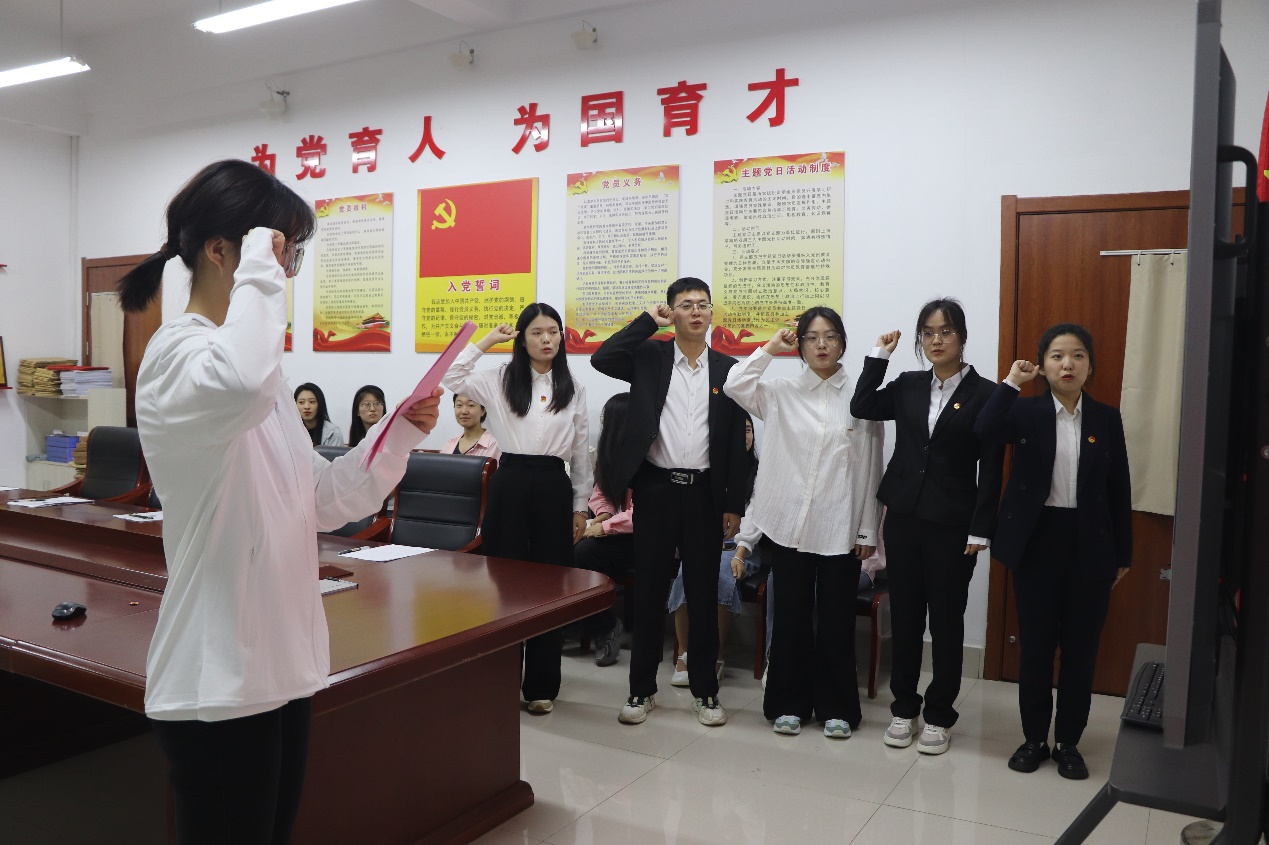 4月30日,我院在豁然楼A201会议室举行2024年上半年新发展团员入团仪式。6名品学兼优的学子,在团干部、新团员的入团介绍人的共同见证下,正式成为光荣的共青团员。入团仪式按照奏唱国歌、宣布新团员名单、佩戴团徽、入团宣誓、新老团员代表发言、向新团员提出希望和要求及奏唱团歌等环节依次进行。新团员代表周晨、老团员代表王璇分别发言,团总支书记杜珊珊向新团员提出了希望和要求。最后,杜珊珊面向新老团员讲授“青春心向党 建功新时代”主题团课,引导广大团员听党话跟党走。
