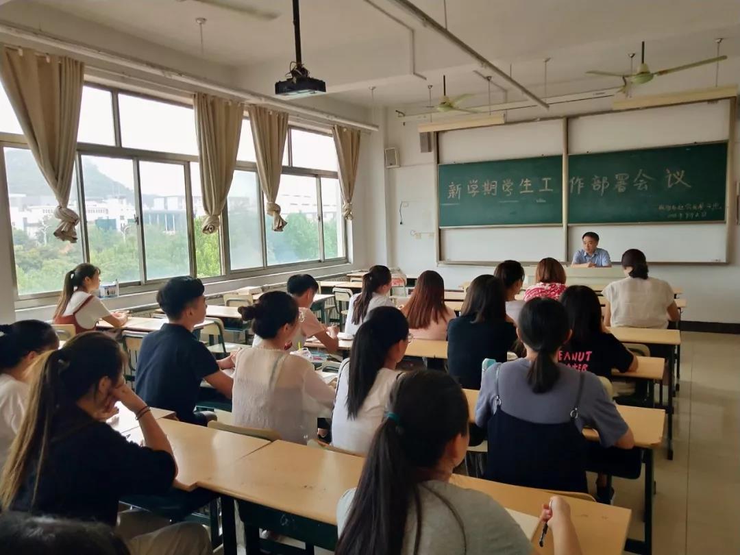 9月2日上午,我院2018年第二学期学生工作部署会议在综合楼1414室召开。院党总支书记蔡永清主持了会议,团总支副书记孙洪扬及各班班主任出席了此次会议,各班班长、团支部书记及学生会副部以上成员参加了本次会议。