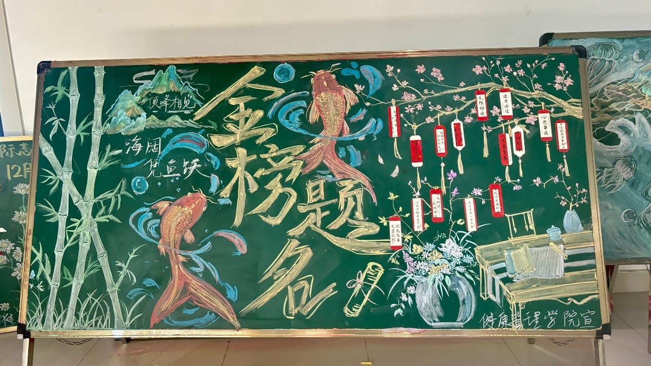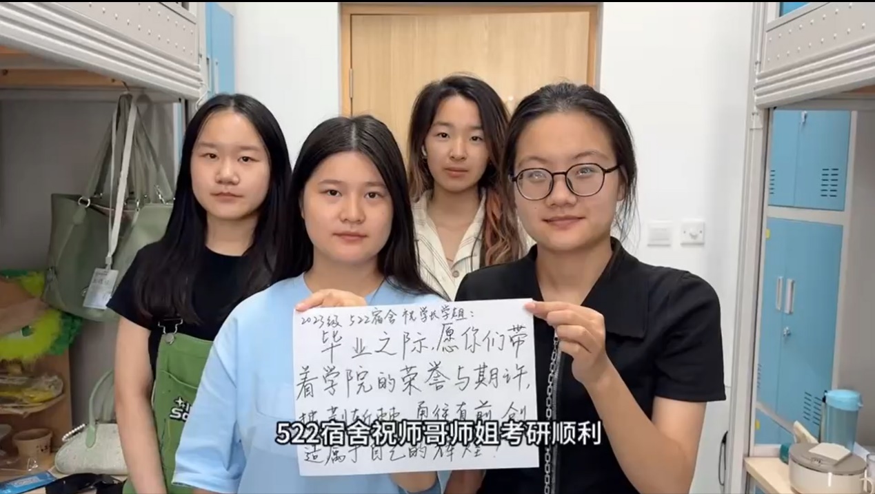 非毕业班学生还自发录制了考研祝福视频,向考研学子们传达了鼓励与祝福。学院学生会绘制了“冬日送温暖,研途笃信念”展板,展板采用金黄色、浅蓝色等温馨舒适的色彩搭配,装饰有学生手写的祝福卡片,营造了积极向上的氛围,以直观、清晰、明确的画面为考研学子送上鼓舞与祝福。