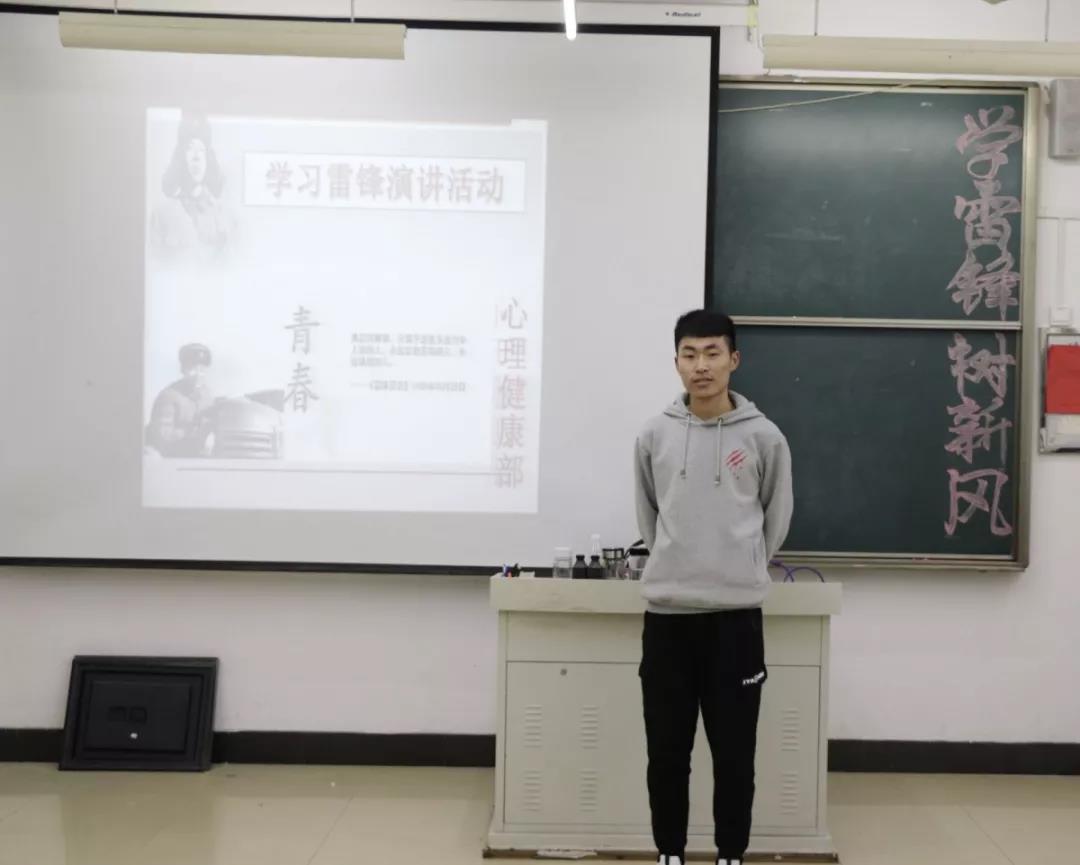 雷锋精神,是中华民族的传统美德,更是中国高校大学生理应具备的优良品德。为践行雷锋精神,倡导时代新风,3月10日晚,我院心理健康部在综合楼1414教室举办了“学习雷锋”主题演讲活动。