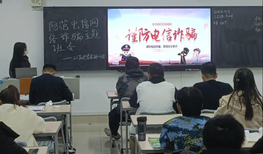 为增强学生防范网络诈骗知识和技能,提高学生自我防范能力,切实保护学生的合法权益,保障学生的财产安全。我院各班召开防范电信网络诈骗主题班会。