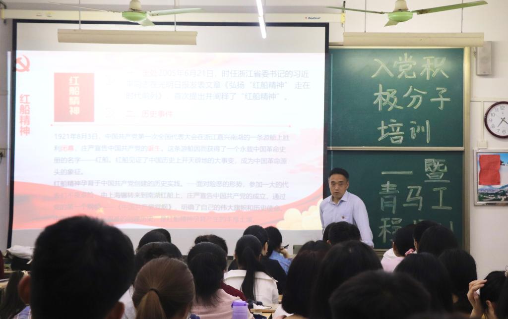 按照党史学习教育重点活动计划安排,5月14日晚,党总支书记蔡永清在综合楼1414室为93名学生党员和入党积极分子做专题讲座《从党的精神谱系中汲取丰富营养》。
