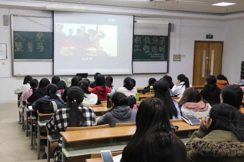 为培养入党积极分子无私奉献精神,树立坚定信念,11月14日晚,政治与社会发展学院、化学化工与材料科学学院、文学院入党积极分子在综合楼1312教室观看电影《沂蒙六姐妹》。