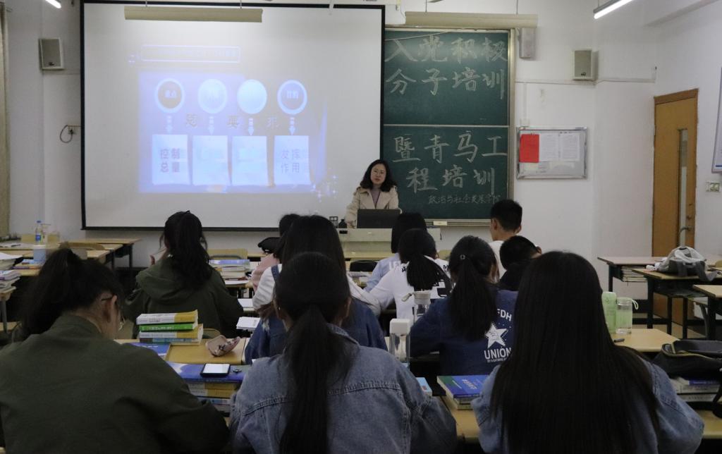 5月9日晚,学生党支部书记孙洪扬为入党积极分子上了题为“明确党员发展程序,争做合格共产党员”党课。