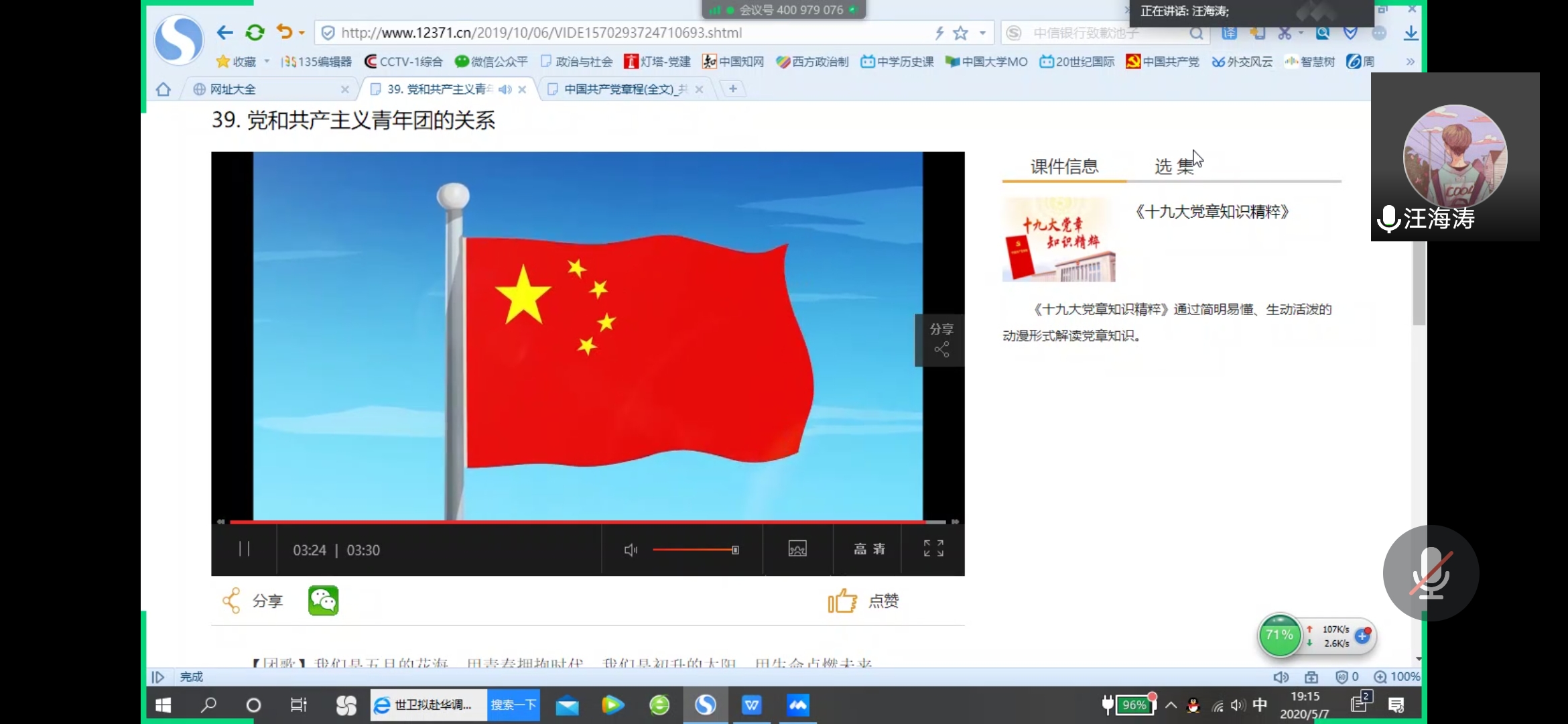 为深化学生对党章的了解,提高入党积极分子的政治理论修养,5月7日晚七点,我院通过网络平台开展了入党积极分子线上培训。此次党课培训由我院预备党员汪海涛主持。
