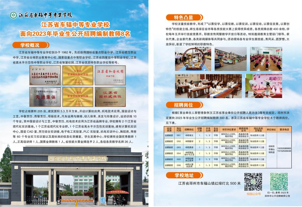 江苏省车辐中等专业学校面向2023年毕业生公开招聘编制教师8名