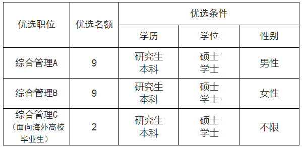 优选范围为取得全日制学历学位的博士、硕士研究生和部分重点高校(见附件)取得全日制学历学位的大学本科生。根据教研厅函〔2019〕1号文件规定,自2017年起,由国家统一下达招生计划、考试招生执行相同政策和标准的非全日制研究生可报考符合条件的相应岗位。2025年山亭区计划优选青年人才20名,博士研究生不占名额。具体职位如下: